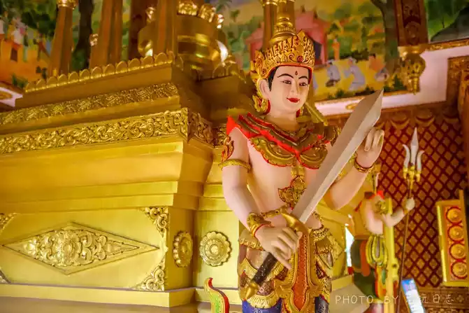 Elder Wu Ba Guda Statue, which is called "Demon Subduing and Eliminating Disasters". He was a man of the Mauryan dynasty in ancient India. The Buddha statue is said to have been sculpted by Thai artisans.
