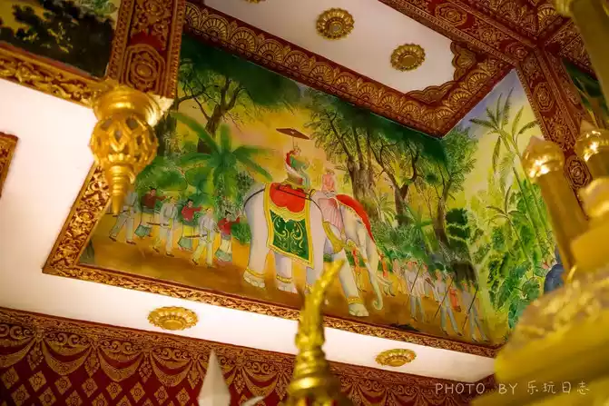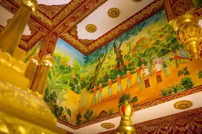 murals on the ceiling depict the scenes of the Dai people celebrating and living, praying for a good harvest.