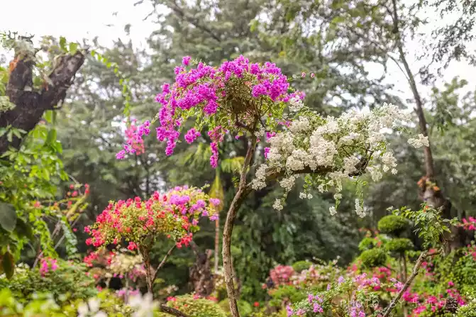 There are many exotic flowers and trees in the park, like this bougainvillea, a tree has three colors, and they compete for beauty. It opened my eyes.