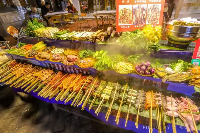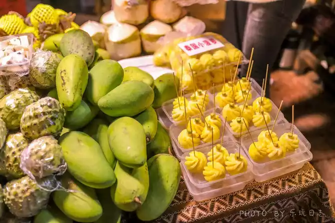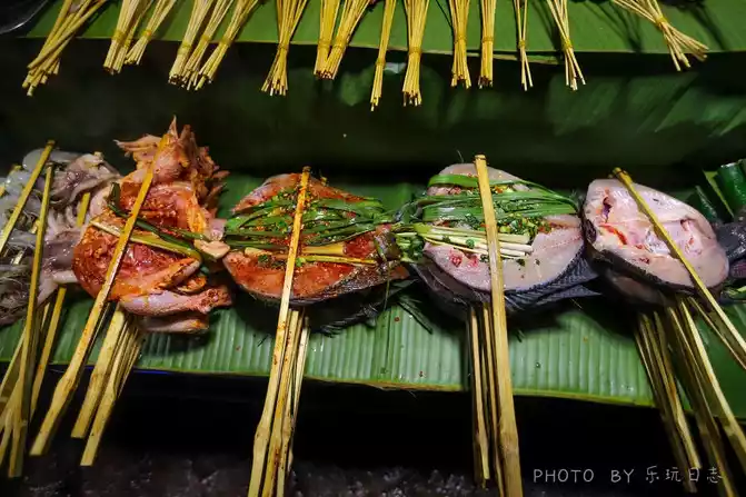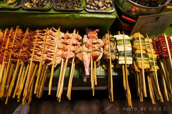 characteristic flavor of Daiwei ethnic minorities. Barbecue is the main focus, like the supper culture of the Starlight Night Market is very distinctive, this is the only national barbecue in China, the city of barbecue, the Starlight Night Market is next to the Shwedagon Pagoda, it is open until two o'clock in the morning, to travel to Xishuangbanna, you must arrange a night market food tour.