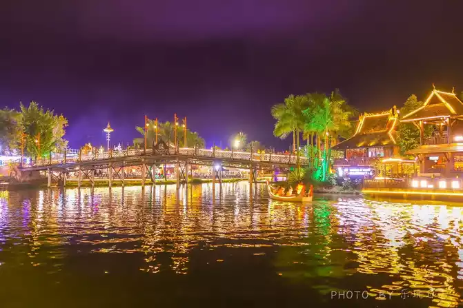 The Lancang River is regarded as holy water by the Dai people, and the best way to feel this river is to take a boat to visit the Meigong River, 30 yuan per person, and watch the lights on both sides of the river.