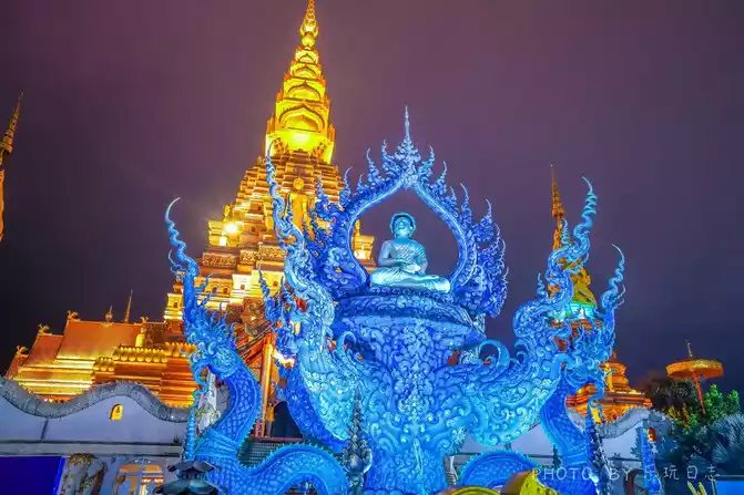 The lanterns on the base will emit different colors, which will reflect the golden pagoda next to it, which is very beautiful.