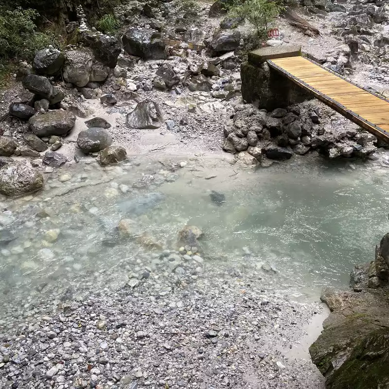 Because of the flood, only two pools were opened that day for safety reasons. It just rained yesterday, the sky is still a little cool, the hot spring is cold outside, the daughter has been unwell these days, and she will go back to the rest area to wait for us after soaking for a while.