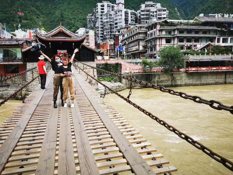 Luding Bridge, also known as Dadu Bridge, is a ferrata bridge across the Dadu River in Luqiao Town, Luding County, Ganzi Tibetan Autonomous Prefecture, Sichuan Province, which was built in the forty-fourth year of the Kangxi Dynasty of the Qing Dynasty (1705). With a total length of 103.67 meters and a width of 3 meters, it consists of 13 chains and is an ancient bridge with a long history.