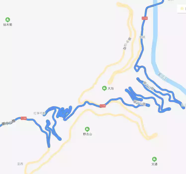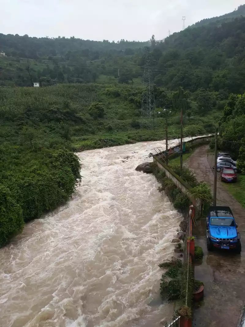 At 20:40, it started to rain when I was about to leave Anha Town, and I turned to National Highway 248, passing through Wudaoqing Township and Luojishan Town in Puge County to Luojishan Ninety-Nine Mile Hot Spring Waterfall, and it rained all the time. Finally, turning from National Highway 248 to Luoji Mountain Ninety-Nine Mile Hot Spring Waterfall is a pothole and muddy road, 2 kilometers, about ten minutes to walk, and it rained heavily when we were about to arrive at the Dacaohe Hotel.