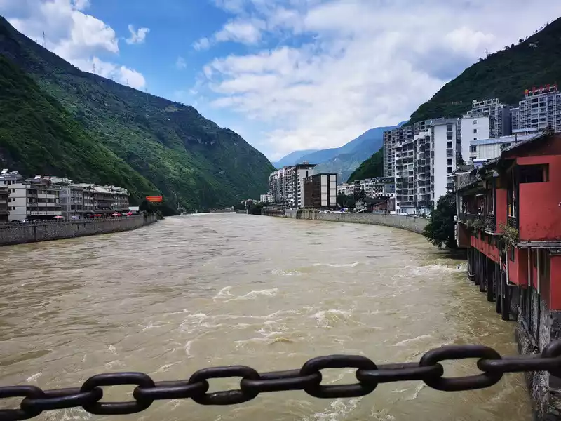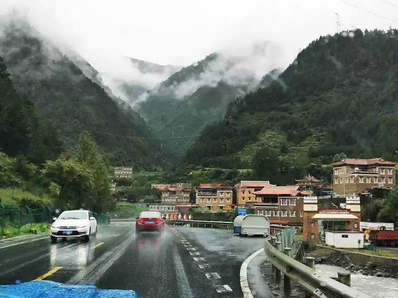 16:30 Pass through Kangding City, there is Paoma Mountain Scenic Area nearby. Kangding, a place famous for Kangding love songs, the Zheduo River flowing through the city is turbid and turbulent.