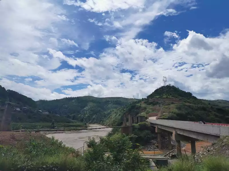 12:33 Pass through the Qinggangzui Dadu River Bridge and Waterfall Gully Reservoir in Xiaobao Tibetan Yi Township, Hanyuan County.