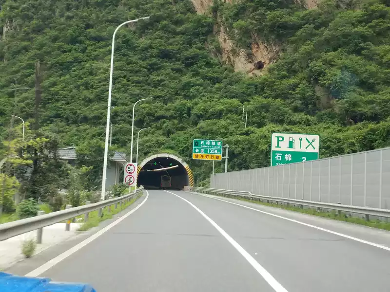 After more than ten minutes after Mianning, it was the Pulling Sheep Tunnel and began to climb over Tuowu Mountain. Therefore, the Sheep Pulling Tunnel is also called the Tuowushan Tunnel, which should be the most dangerous section of the entire Yaxi Expressway.From Mianning to Asbestos over Tuowu Mountain, from more than 2,000 meters to more than 1,000 meters, there is a continuous 51-kilometer long downhill, and there are many bridges and tunnels on the way, the most spectacular is the Ganhaizi and Tiezhaizi double spiral tunnels, which are the world's first double helix small radius curved tunnels, which achieve a continuous rise of 450 meters in the 4-kilometer "V" shaped canyon range (our return direction is to descend) 450 meters, providing a new model for solving the route climb and overcoming the altitude difference.