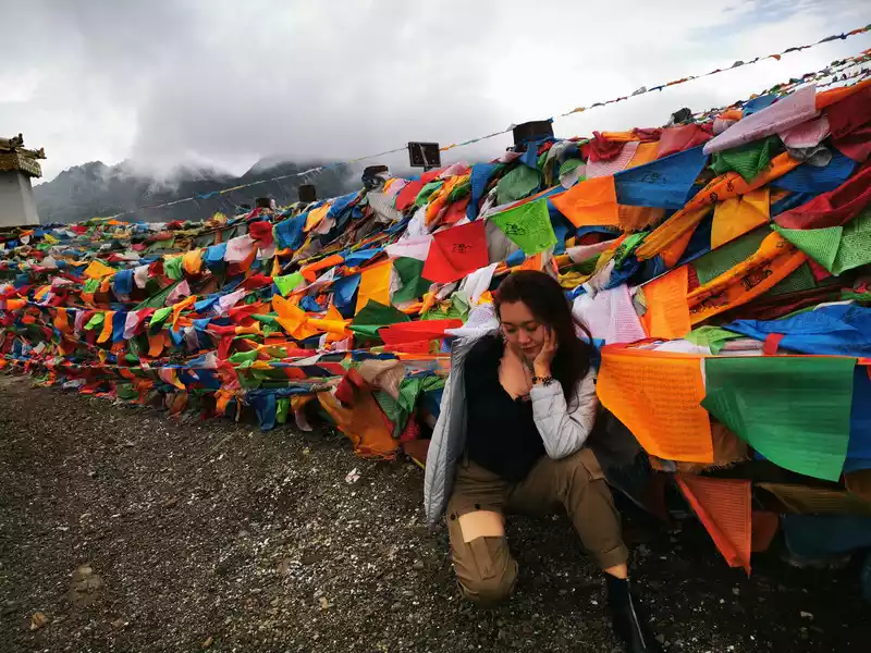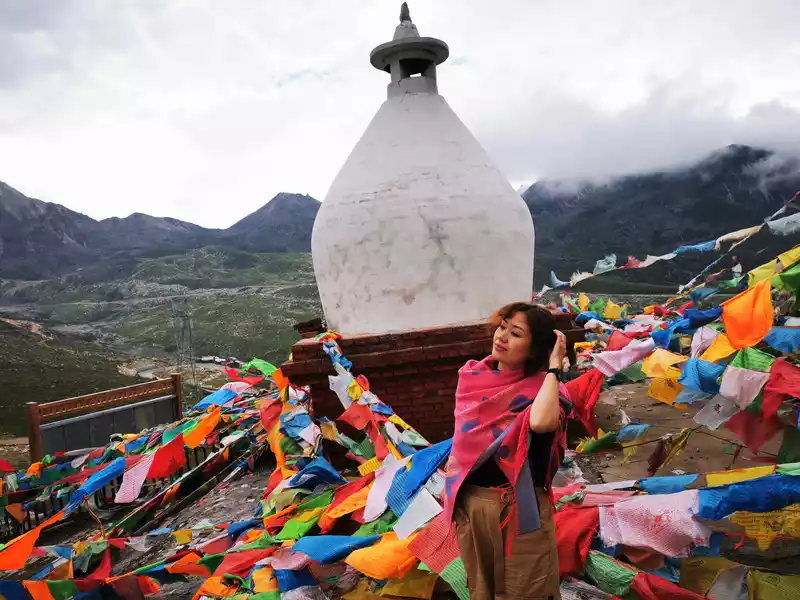 is also an observation deck above the pass of Zheduoshan. It's too windy and cold, so take a photo below.