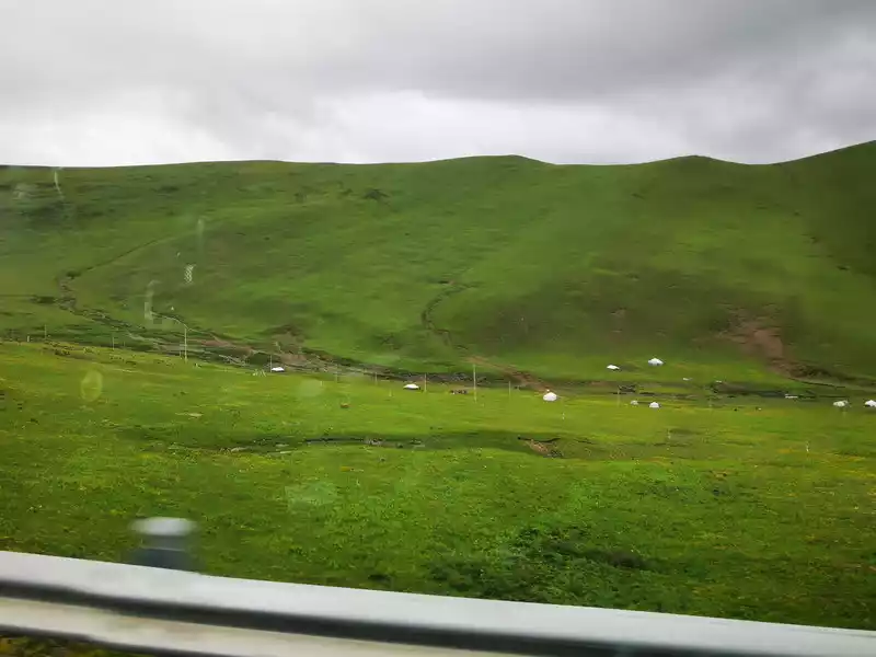The traditional Tibetan black tent is not seen much, the white tent is poured a lot, and a top is dotted on the green savannah.