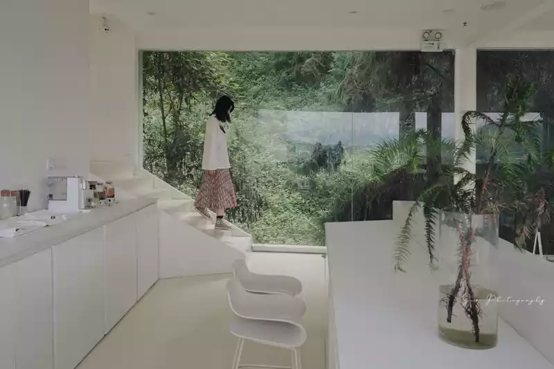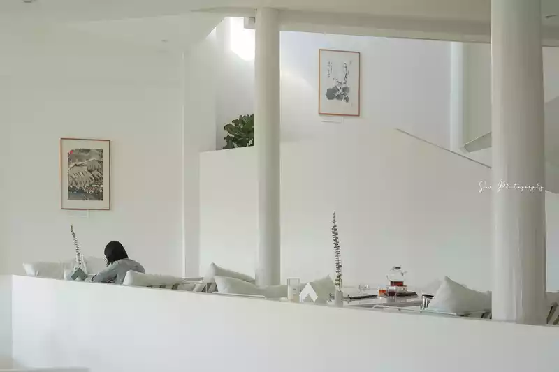 The hotel lobby is also a café, you can enjoy afternoon tea without staying, admire the master-level design, like a tree trunk pillars staggered to support, The sun shines through the gaps, and the pure white picture is very gentle.