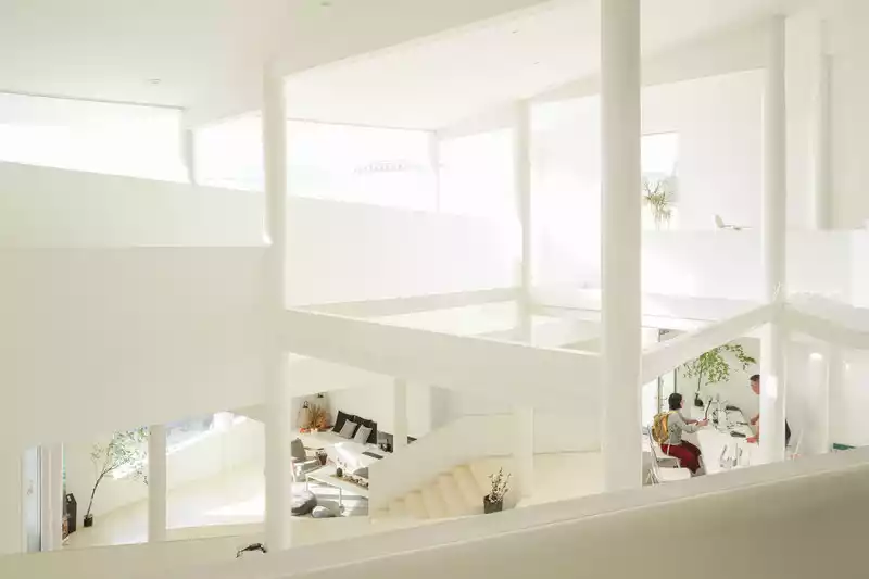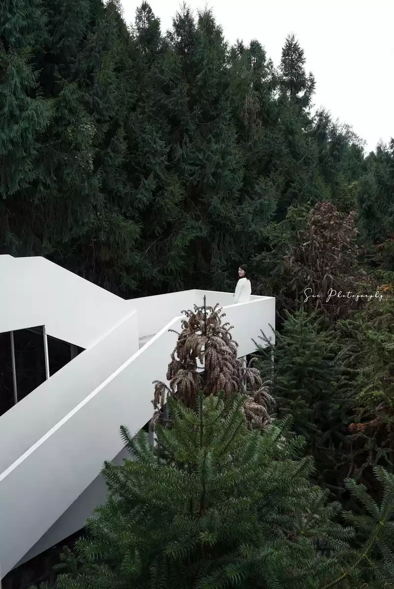 (2) The outdoor white staircase leading to the third floor (special forest style)