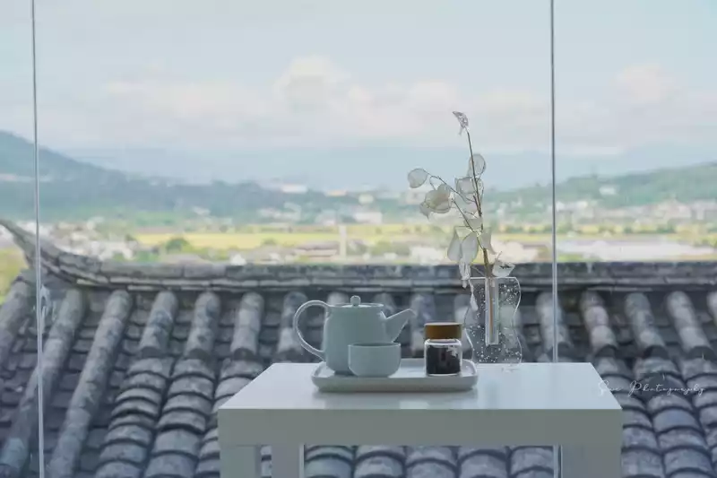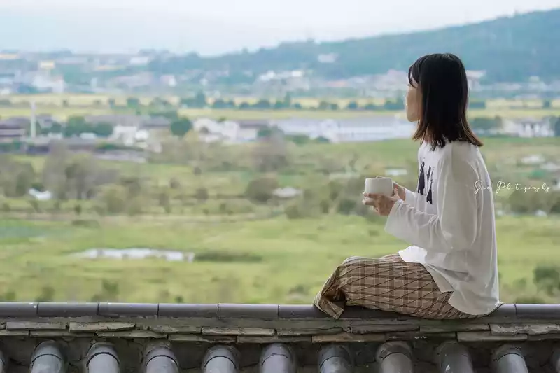 Walking up the white stairs to the third floor of the B&B, sitting on the roof tiles and looking at the field mountain castle in the distance, this moment is the most comfortable time.
