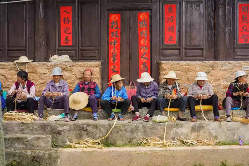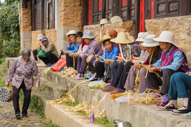 I met a group of old ladies, wearing straw hats under the dilapidated eaves with different expressions, or chatting left and right, or immersed in work, or closing their eyes to recuperate, This is the most beautiful scene I think.