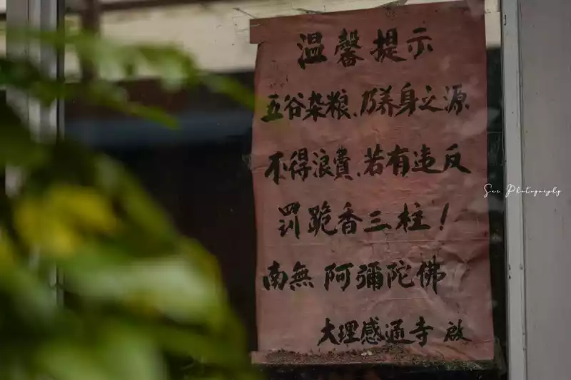 Although there are not many dishes left, there are also my favorite fried tofu, fried cabbage, potato slices, the moment I hold a bowl of hot rice in my hand is grateful, silently not a grain of rice left, after eating, I looked up and saw the words posted in the fasting room, thinking "Shanzai, Amitabha", fortunately I met Gantong Temple, this vegetarian meal trip perfectly made up for the bad mood in Jizhao Monastery.