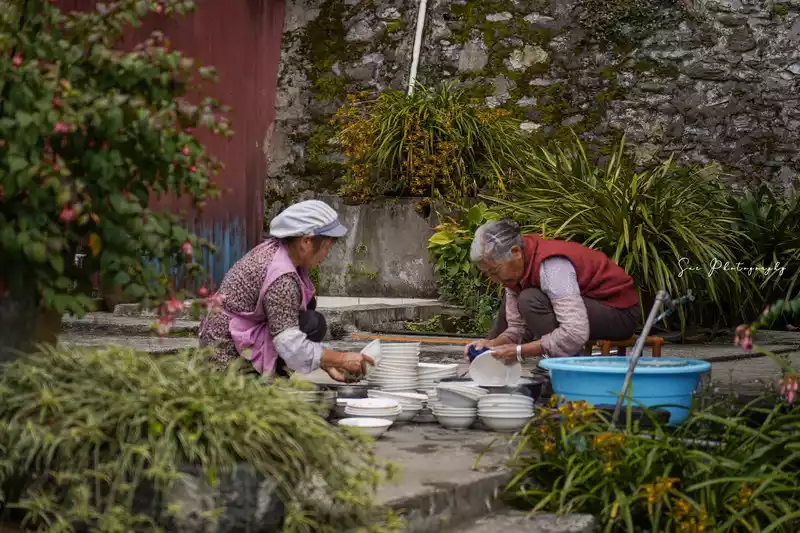 of the time in the ancient town belongs to nature, quiet and ordinary. Residents living in the ancient town gather in the compound to chat in their spare time, look at the scenery, and live a homely life.