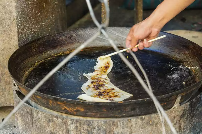Breakfast for locals usually starts with a bowl of hot thin bean flour, "make it on the same day and eat it on the same day", after the morning is gone, Aunt Cun is no exception, when we came, it was already afternoon, so we ordered a large thin slice of soybean flour as a snack. Aunt Cun called us to eat thin bean flour for breakfast the next day, and we nodded frequently.
