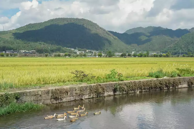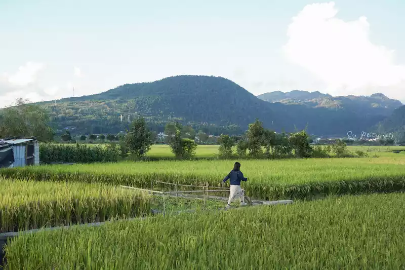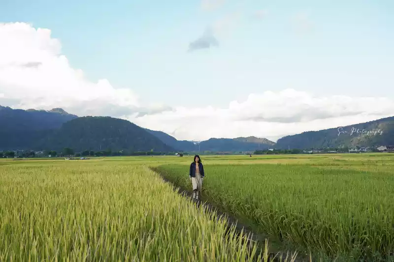 are rows of coffee shops on the edge of the rice fields, and it is indeed a leisurely treat to have a cup of coffee facing the fields on a sunny morning or afternoon.