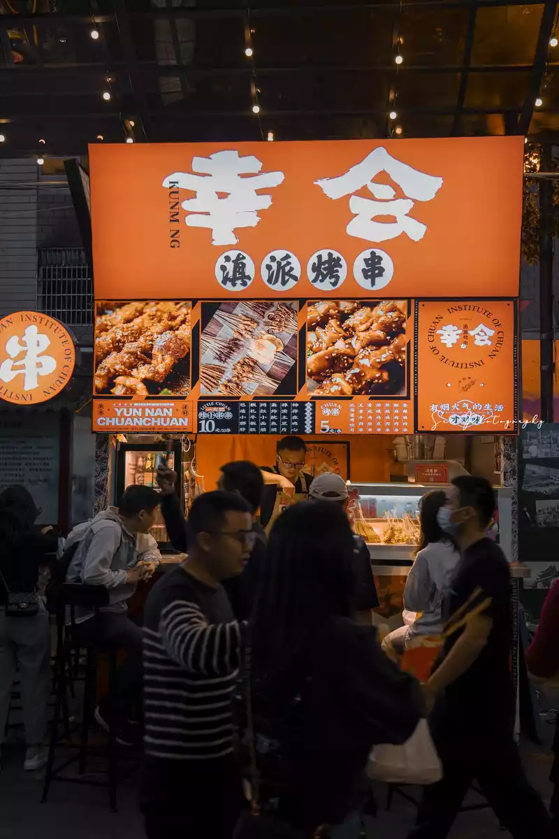It gathers special snacks from Kunming , Yunnan , the whole country and even the world, and the bustling food street is mixed with the sound of ordering, the sizzling of food, and the sound of clinking glasses...... Moving slowly in the crowd, poking your head and brain, looking at the variety of food menus, the fireworks here are too willful, and everyone who comes will unconsciously integrate into the hustle and bustle.