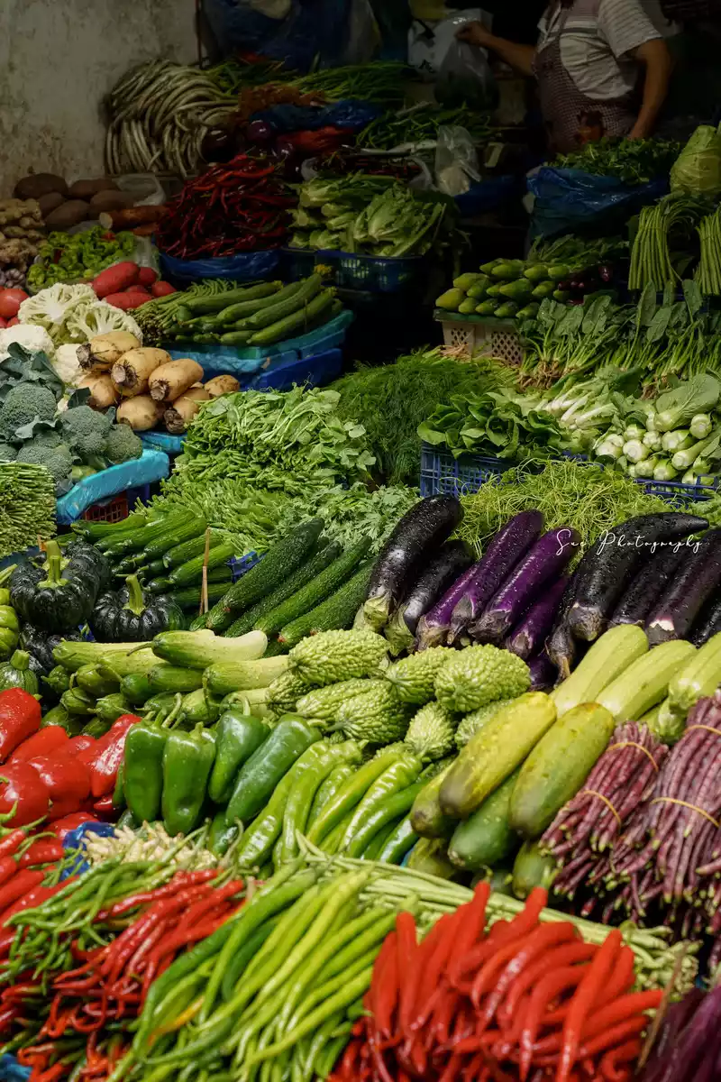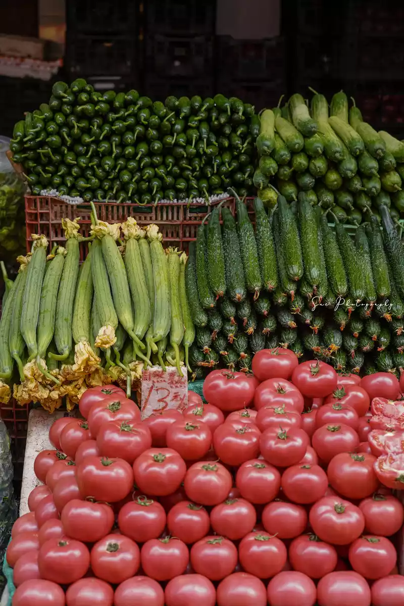 Fruits, vegetables, cooked foods, meats, seafood, fungi, flowers, spices... It is neatly arranged and pleasing to the eye.