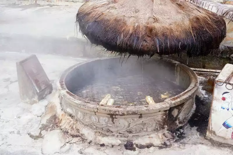 There are three water spray holes at the bottom of the boiling pot, and what is sprayed out is 96 degrees of hot water, like a boiled cauldron of water, even the ground is hot here, and if you want to sit on the steps to rest for a while, you will be repelled by the temperature on the ground.