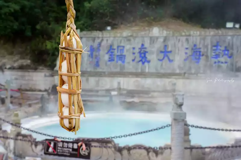There are signs everywhere in the scenic spot that say "it is forbidden to boil eggs in the spring", after the Long March, my string of eggs, finally found a home in the boiled egg experience area next to the big boiling pot, said that it was boiled, in fact, it should be steamed at high temperature, throw the egg skewers into the cage for about 10 minutes, the eggs are fully cooked, and the dream of beautiful hot spring eggs has long been shattered.