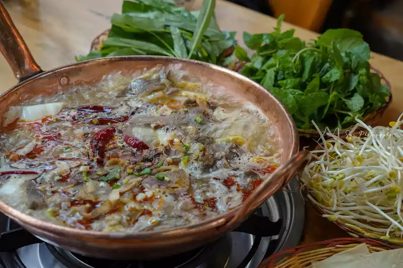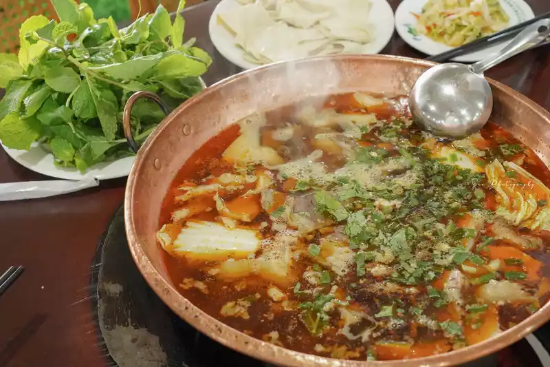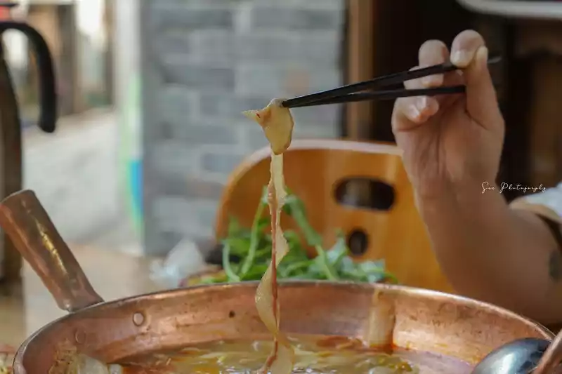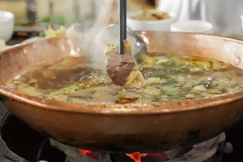 perfect fusion of chili oil and beef broth, gurgling on the charcoal stove, and the pleasure of eating meat in cool weather makes people feel happy.