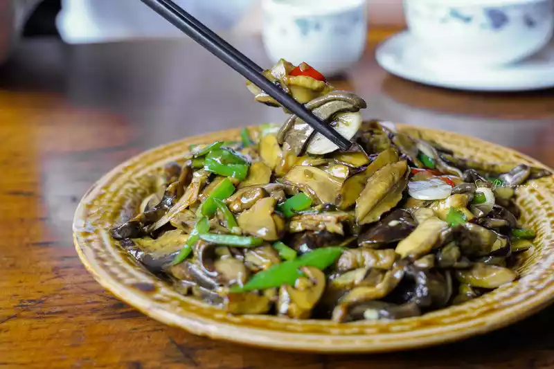 An ordinary family restaurant, with an open living room and a two-story building, the restaurant set up a table in its own yard, which is a place where locals are accustomed to eating. The home-cooked menu is handwritten on the small blackboard, the freezer on the side is placed with more than a dozen kinds of fungi that cannot be named, the simple proprietress is busy in the kitchen, greeting the boss to order for us, the two of them ordered four dishes, and they were very satisfied.