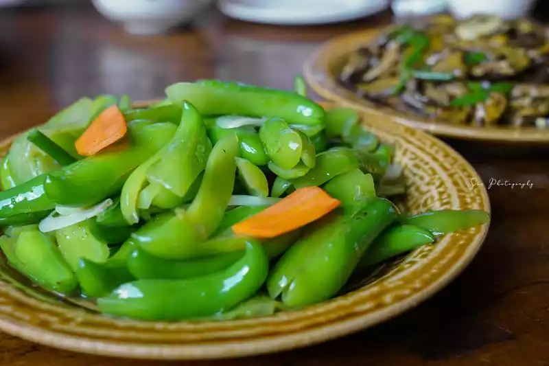 Stir-fried Tengchong horn melon, small horn melon is a unique vegetable in Tengchong, shaped like chili but not spicy, and the taste is fragrant and delicious.
