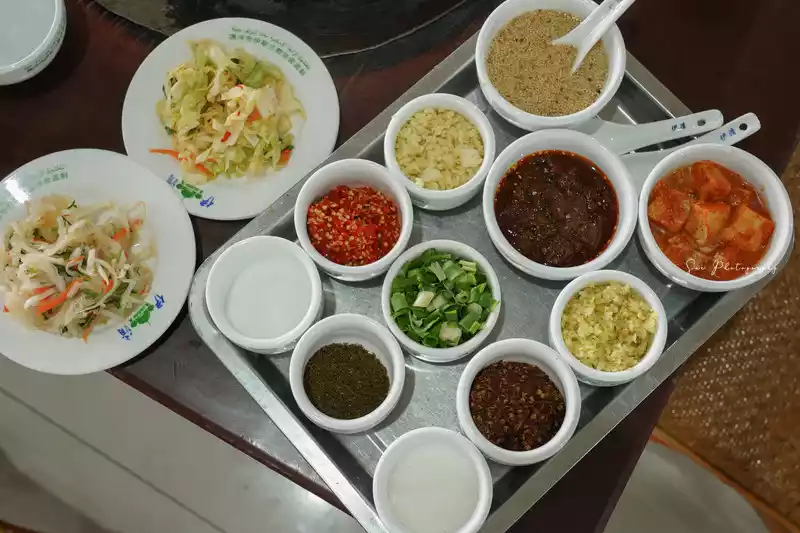 In Heshun Ancient Town, a beef hot pot recommended by the homestay lady, a large copper ladle is a thickly cooked beef bone soup, which is full of beef offal, beef, cowhide, I don't remember how many pounds I ordered, I only remember that the total energy in the copper ladle is constantly sandwiched out of beef, beef and beef offal are particularly flavorful, it is not like Chaoshan beef hot pot that melts in the mouth, it is a little tough in comparison, but full of flavor.