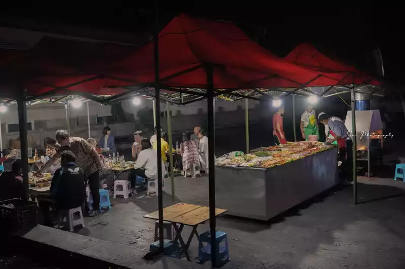 barbecue stall set up in the ancient town after night always gathers people from all over the world, and the food is not amazing deliciousness, but the rare feeling of friends.