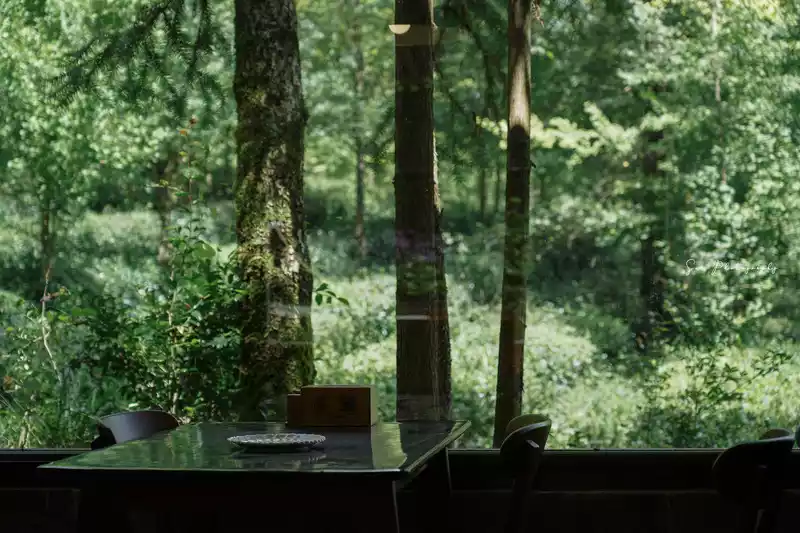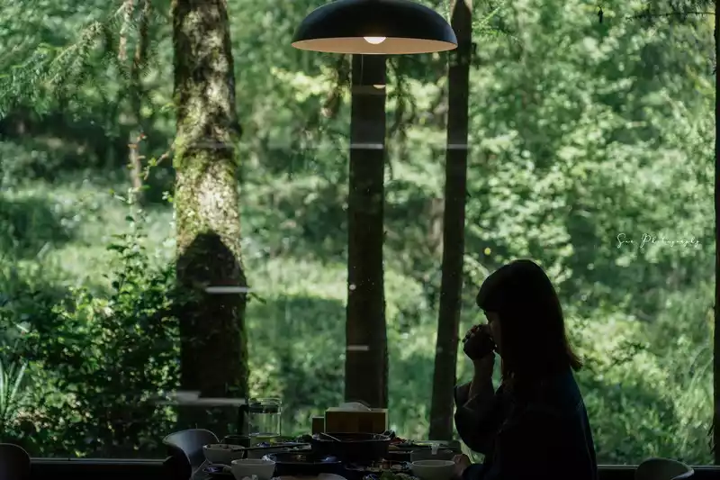 Walking all the way from the small village road to the tea plantation, the undulating mountains are already very eye-catching, and turning to the end to see the thatched wooden houses, for a moment it feels like being in Japan In the countryside, the thatched house goes up, and there is a glass restaurant hidden in the forest.