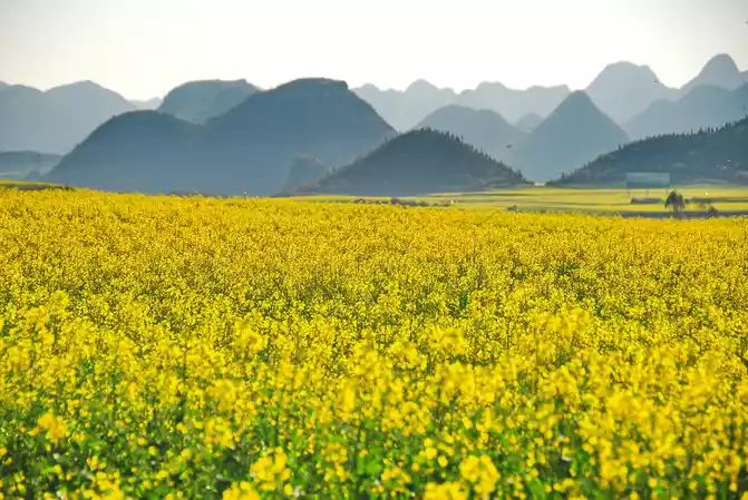 Luoping Flower Sea generally refers to the spectacular rapeseed flower fields in Luoping County, Qujing City, Yunnan Province. The annual Yunnan Luoping Rape Flower Tourism Festival will make you feel the harmony between man and nature and enjoy the picturesque scenery.