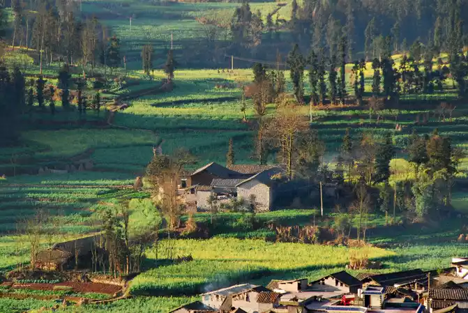 From September to December every year, part of the red land is ready to be planted, and the other part of the red land has been planted with green highland barley or wheat and other crops, which looks like a color block painted by the sky, colorful and colorful, lined with blue sky, white clouds and the unpredictable beam of light, constituting a spectacular scenery of the red land. The palette has a well-deserved reputation.