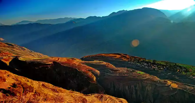 Honghe Hani Rice Terraces are located in southern Yunnan, covering the four counties of Yuanyang, Honghe, Jinping and Luchun in Honghe Prefecture, with a total area of about 1 million mu, and there are 170,000 mu of terraces in Yuanyang County alone. The Yuanyang Terraces are landscape and pastoral paintings that the Hani people have been "carving" for more than 1,300 years. On June 22, 2013, at the 37th World Heritage Conference, the Honghe Hani Rice Terraces were successfully inscribed on the World Heritage List, becoming the 45th World Heritage Site in China, making China the second largest World Heritage Site after Spain, second only to Italy.