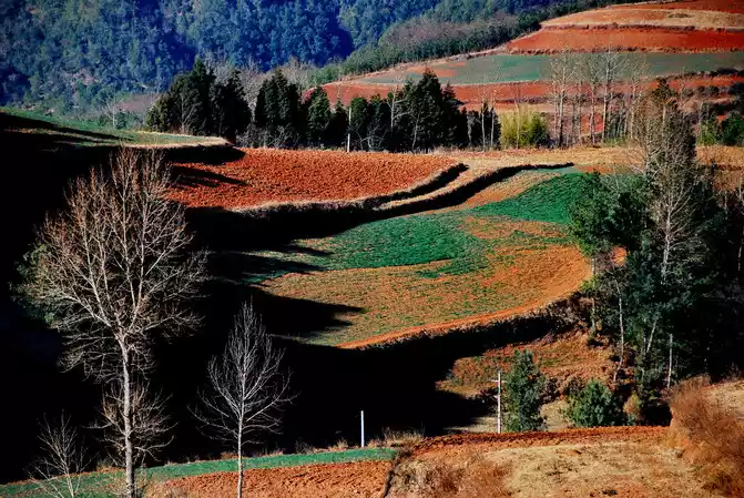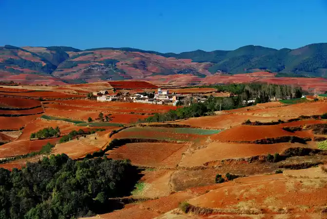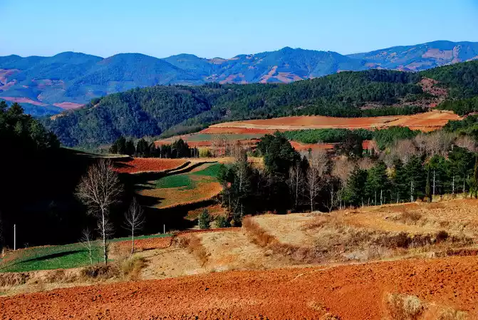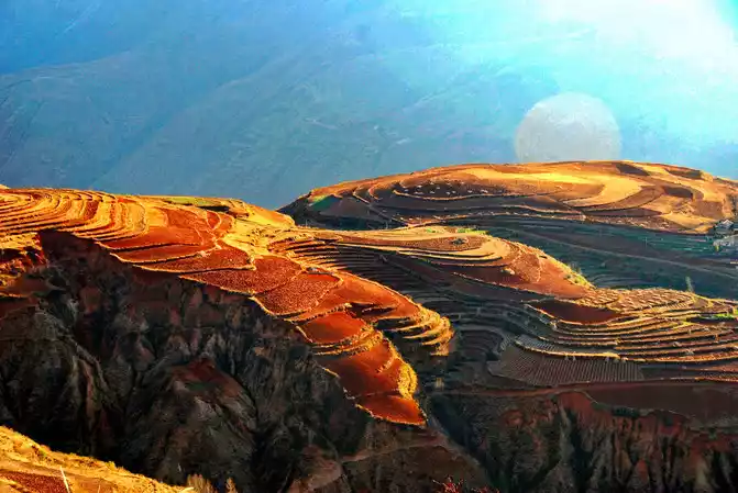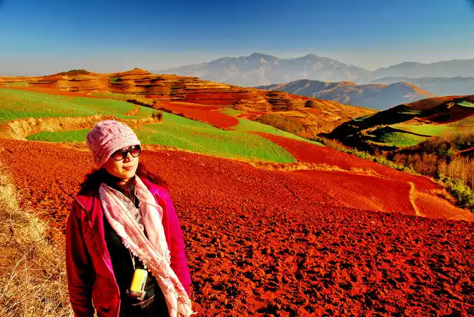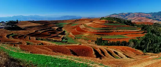 "Dongchuan Red Land" is located in the north-east direction of Kunming City and belongs to the Red Earth Town under the jurisdiction of Dongchuan District, Kunming City. It is about 250 kilometers from Kunming to the center of the attraction, and the main attractions are between 1800 and 2600 above sea level. The area with a radius of nearly 100 miles here is the most concentrated, typical and distinctive red soil on the Yunnan Red Earth Plateau. Against the blue sky, white clouds and the unpredictable light, it constitutes a spectacular scenery of the red land.