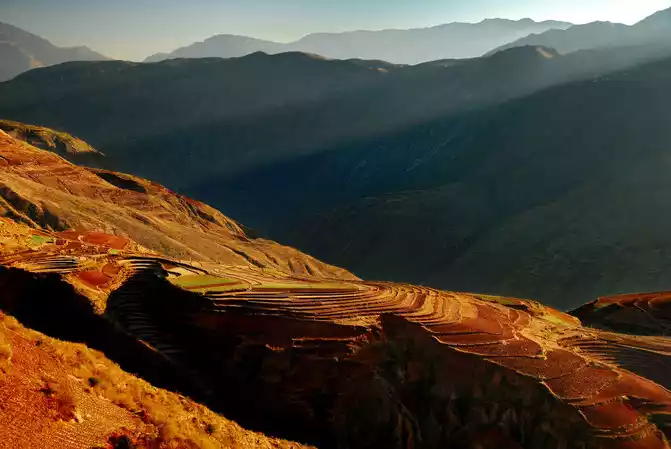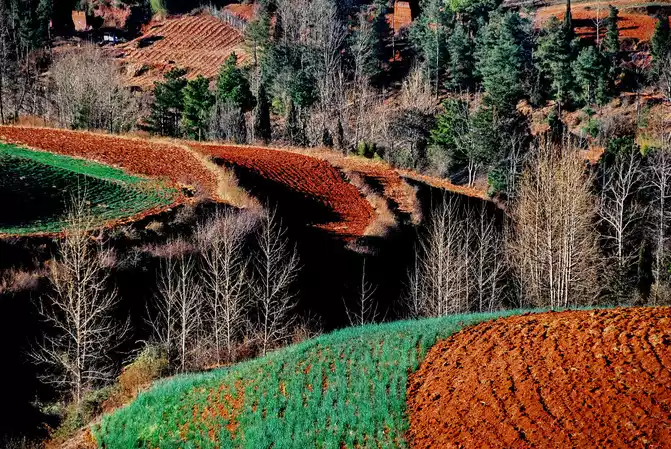 Yunnan is located in a warm and humid environment, and the iron in the soil is slowly deposited through oxidation, gradually forming dazzling colors.
