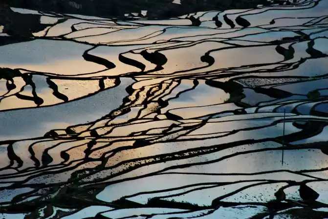 Yuanyang Terraces, located in the southern part of Ailao Mountain in Yuanyang County, Yunnan Province, are masterpieces left by the Hani people for generations. Yuanyang Terraces are the core area of the Honghe Hani Terraces. The Honghe Hani Terraces are a wonder of terraced farming civilization created by people of all ethnic groups, mainly the Hani ethnic group, using the special geographical climate to cultivate together, with a grand scale and majestic momentum.