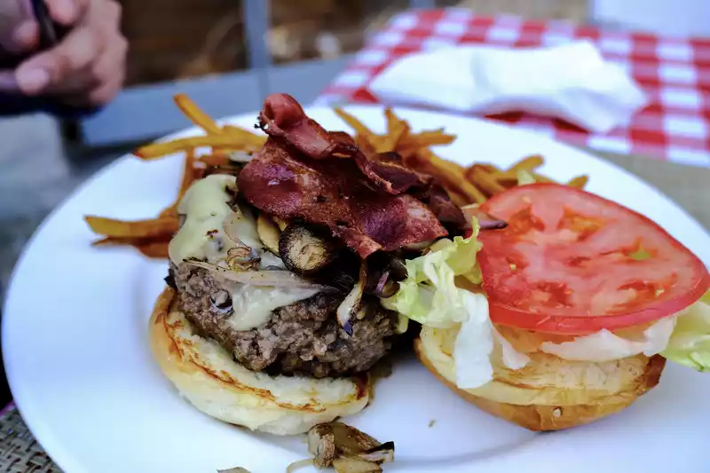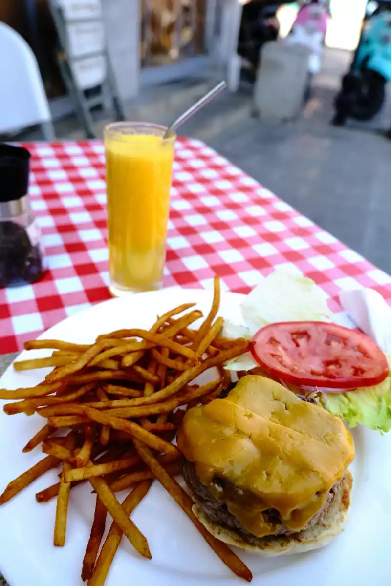 The beef in the burger is the best I've ever had, the fries are fried for a long time, and the orange juice is very satisfying.