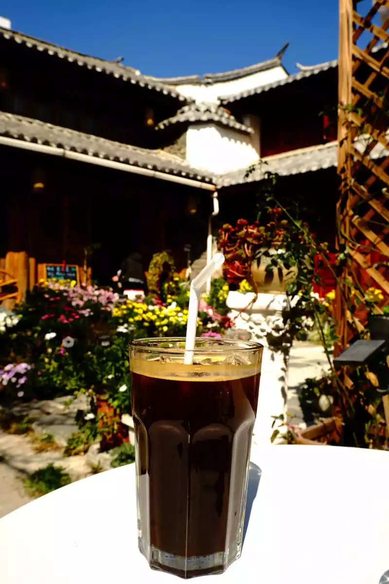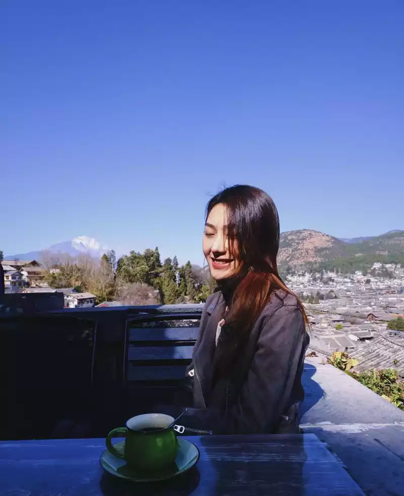 The coffee shop is next to Lion Rock, the only place where you can see the whole picture of the ancient city and the snow-capped mountains is more perfect, Drinking Yunnan coffee in the sun is worth it in this life.