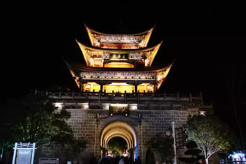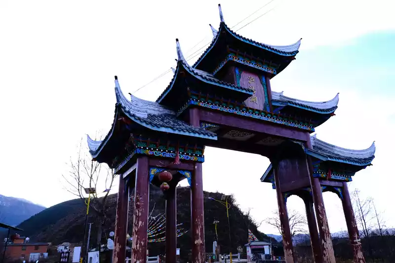 After walking the wedding bridge, I took a bunch of landscape photos, and it was getting dark, so I had dinner on the way back. The journey back to Yunnan from Sichuan takes about 50 minutes. There are no street lights at night, so be careful when driving~~~ The climate is getting colder and colder after dark, so you should always prepare a padded jacket and don't catch a cold~ On the way back, I saw the archway of the Mosuo people, which was so special! Scenery everywhere