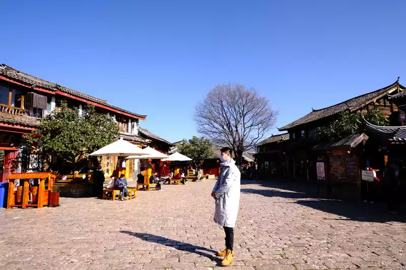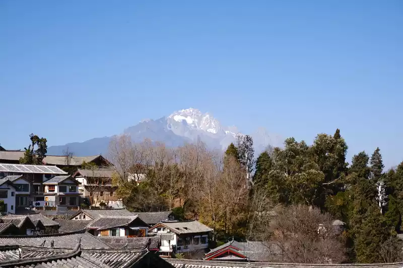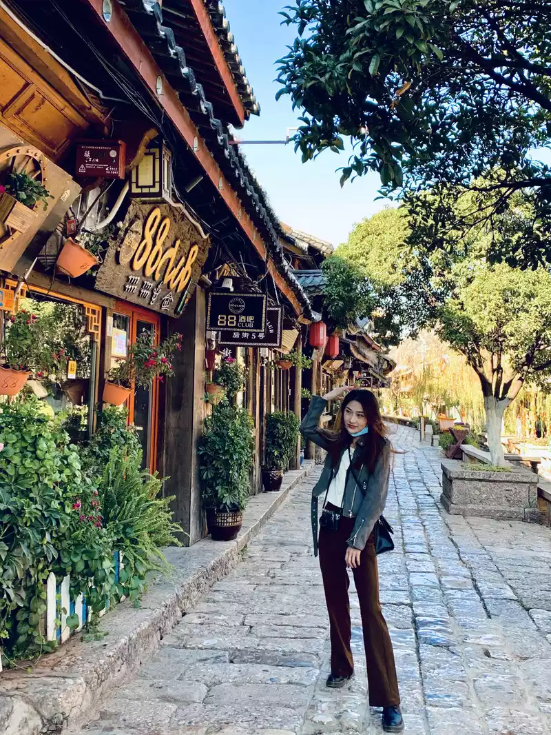 There are very few people on the road, basically locals, the ancient city goes up to the highest point of Lion Rock for about 15 minutes, many rugged stairs with a little slippery, it is recommended that women do not wear high heels~ You don't need to buy tickets to enter the city, just provide a health code. There are still a few shops on both sides of the road, and they are basically home for the New Year. I feel like I'm in a fake Yunnan. Reached the top of the mountain and chose a coffee shop with a view of the Jade Dragon Snow Mountain.