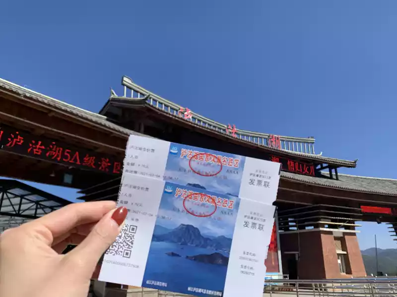 After filming, I continued to move forward, leaving my boyfriend to sleep by himself, ding~ arrived at Lugu Lake, You need to buy a ticket to enter, 70RMB per person, and you need to provide Yunnan health code and ID card.