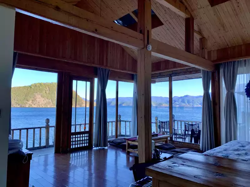 We stayed at the Riege Peninsula in Lugu Lake. 1080 One night, the only room with a 270° lake view.