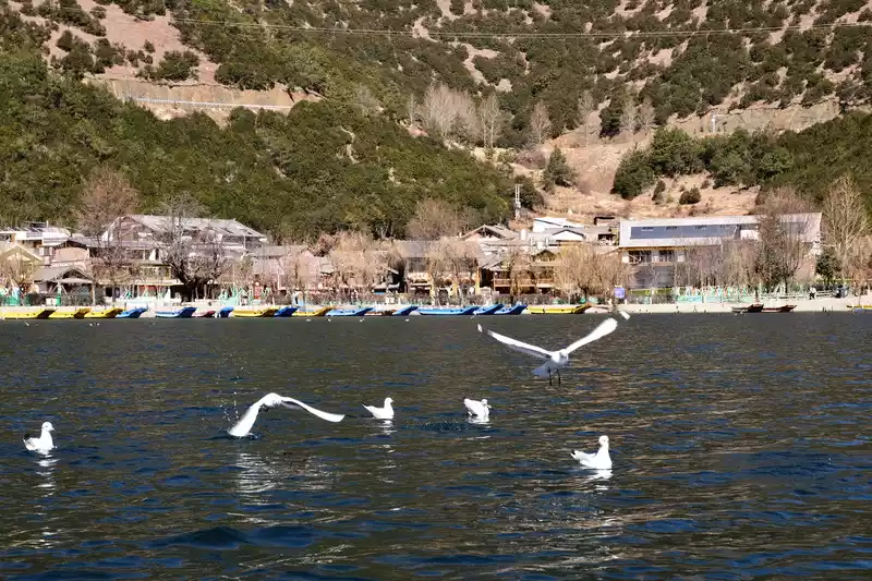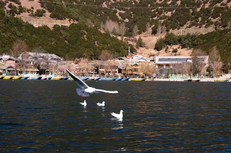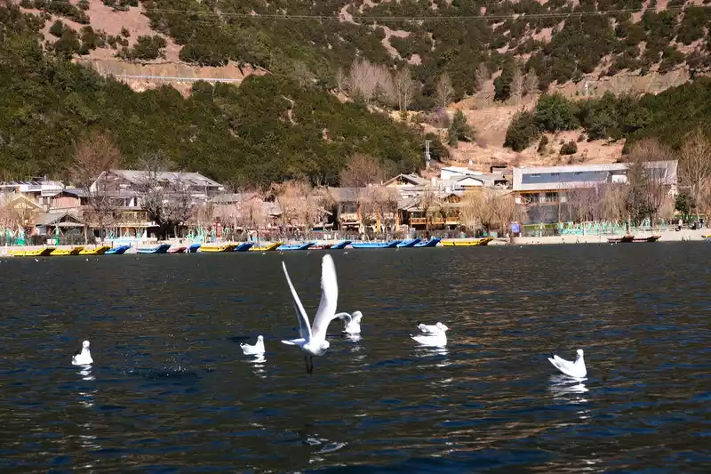 I originally planned to return to Lijiang to meet my uncle on the third day, and only set off for Dali on the fourth day, but I temporarily changed my attention and took a six-hour drive to Dali tomorrow. So I immediately booked an inn in Dali Shuanglang, and decided to sleep in this pleasant Lugu Lake to see if the weather was windy the next day, so I got off the pig trough boat and had lunch before leaving.