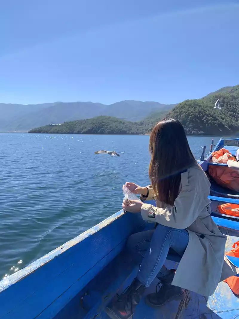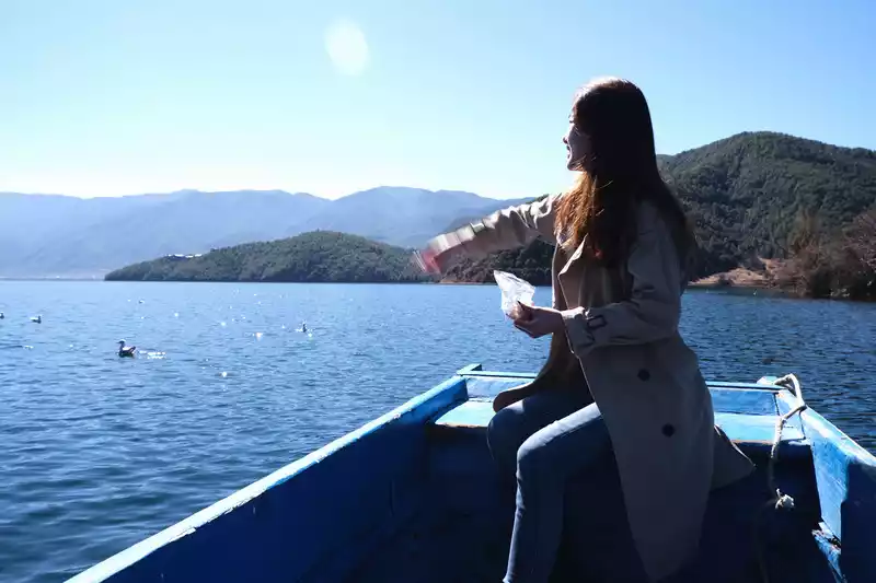 The scenery of Lugu Lake is a painting with a casual shot. Friends with loose time should stay for a few more days. The temperature difference between morning and evening is large, and when the sun goes down, the wind will gradually pick up and it will be cold, so you need to bring a jacket with you.