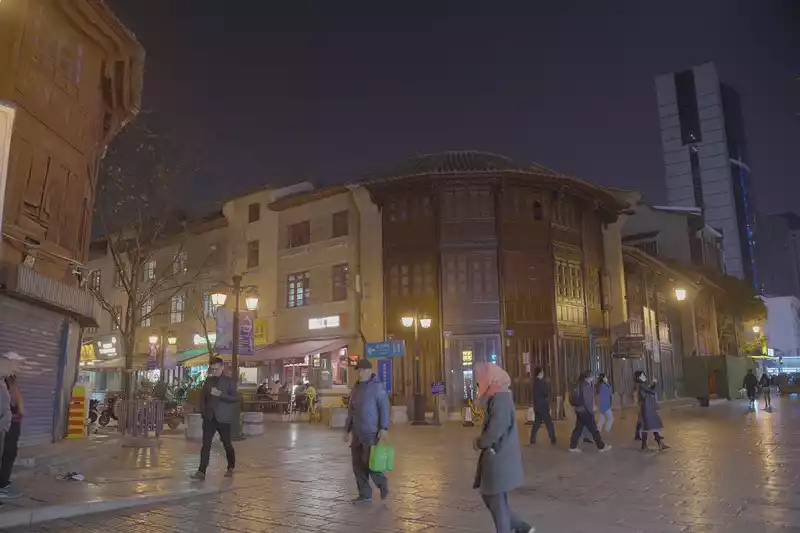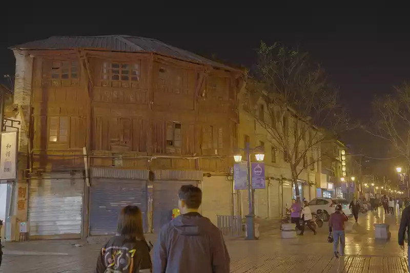 far fewer people in the old street at night, and the renovated houses look magnificent on the outside, but those old houses that are still old wood make me feel more flavorful.