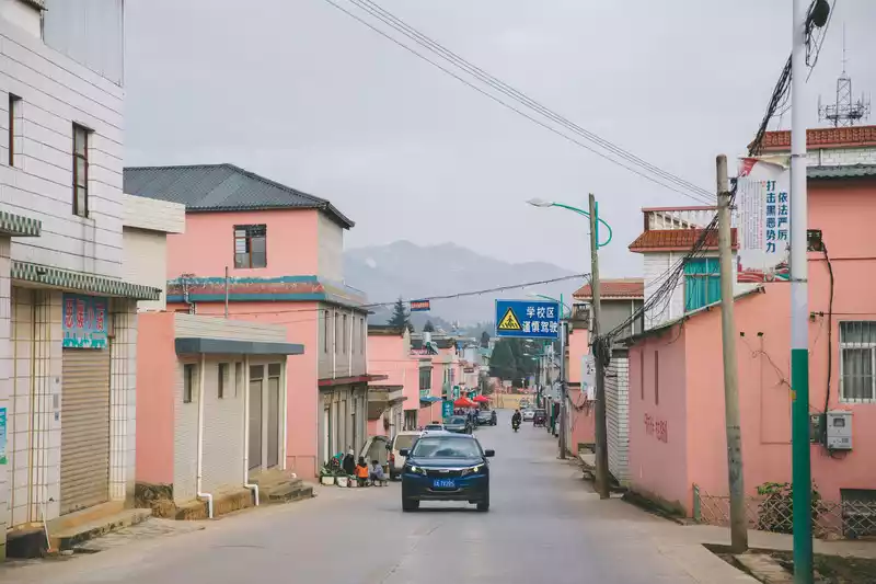 Xiaohe is a village near the reservoir in the north of Kunming, and the pink exterior wall seems to be in a literary and artistic village, of course, the premise is to throw away the big red characters on the wall.