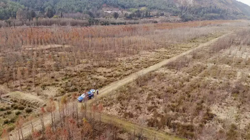 We followed the dirt road we had driven straight ahead to the denser areas we saw on the plane. Only then did I realize that the withered and yellow woods actually had his different good-looking, although it was a little lonely.