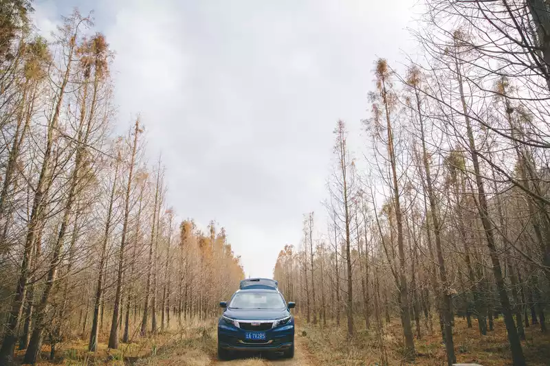 We continued to drive deep into the jungle, and sure enough, good scenery needs to be found. The car entered a brownish-yellow metasequoia forest, as if it had come to a wetland. The metasequoia trees here grow more densely together, as if autumn just stopped here, and it is indeed much more beautiful than the desolate path at the beginning.